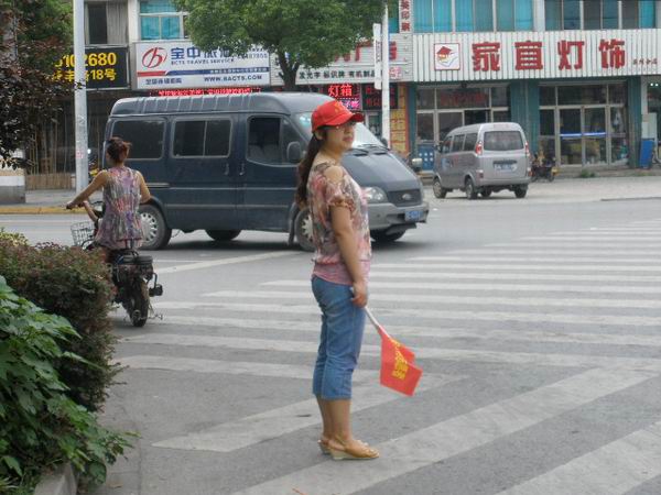 2012年8月27日麥點志愿者分為多組,身穿小馬甲、手揮小紅旗,配合交警維持交通秩序,勸導(dǎo)制止行人、非機動車的違章、違法行為,為市民出行營造了一個安全、暢通的交通環(huán)境。 炎炎烈日下,志愿者們正用他們辛勤的汗水,澆灌著城市靚麗的文明之花。