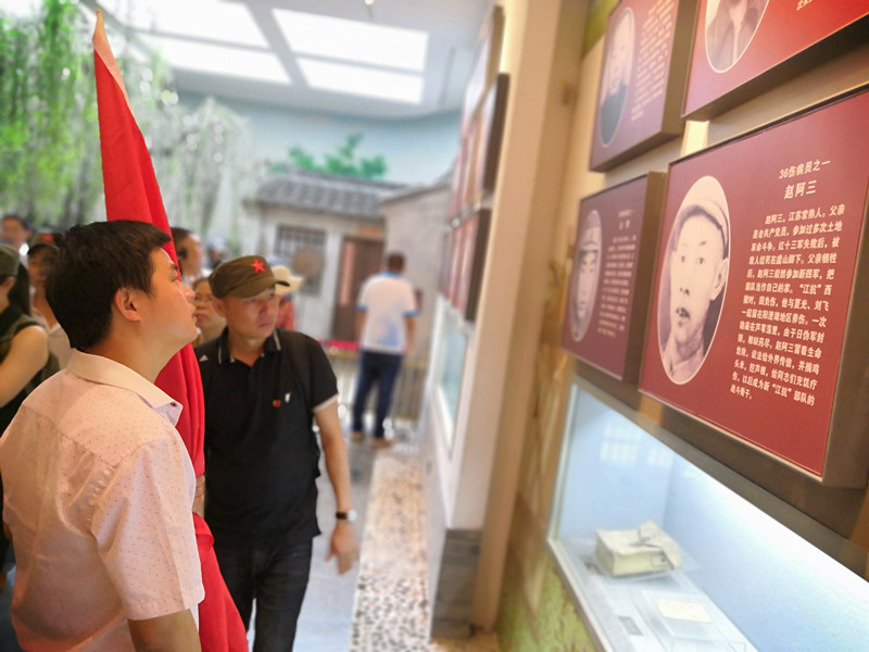 在沙家浜革命紀(jì)念館內(nèi),黨員們懷著無比崇敬的心情詳細(xì)了解郭建光、阿慶嫂等《沙家浜》人物原型的事跡,認(rèn)真觀看反映當(dāng)年沙家浜地區(qū)新四軍抗戰(zhàn)歷史的照片、實(shí)物,仔細(xì)聆聽“江抗”緊緊依靠人民群眾的支持,開展艱苦卓絕的抗日斗爭的傳奇事跡,再現(xiàn)了黨領(lǐng)導(dǎo)的武裝力量在人民群眾的支持下,與日寇浴血奮戰(zhàn),在熊熊的蘆蕩烽火中,感受當(dāng)年陽澄湖畔蘆葦蕩里的革命風(fēng)云和抗日戰(zhàn)爭時(shí)期軍民之間的魚水情深。