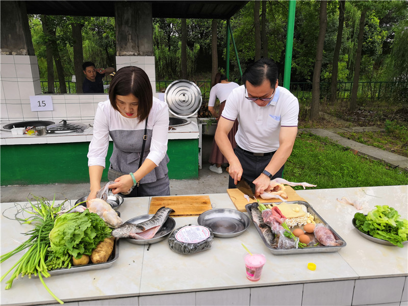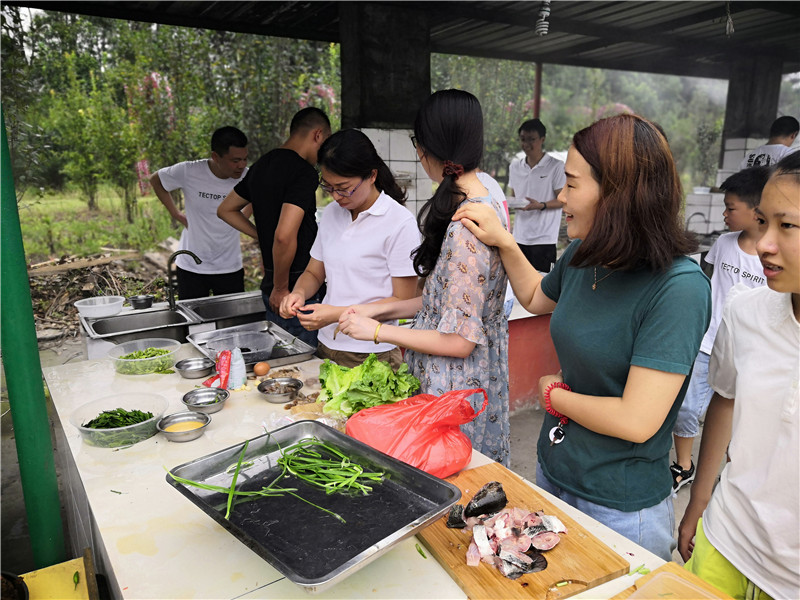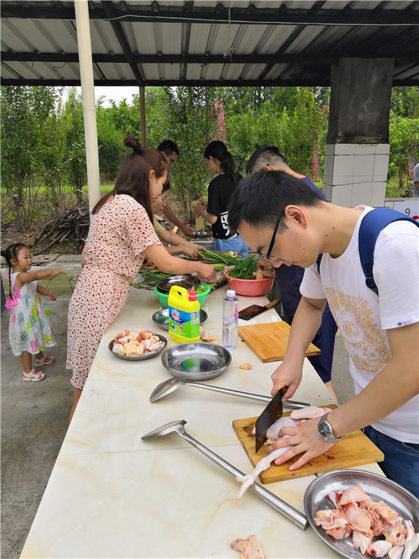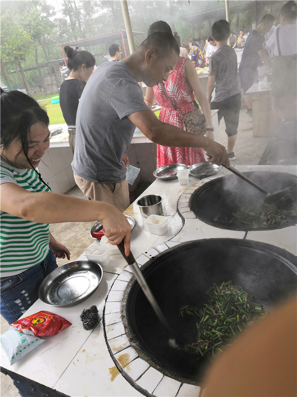 在公園中,孩子們?cè)诎职謰寢尩呐惆橄?,暢玩了水上世界、旋轉(zhuǎn)木馬、小火車(chē)、水上腳踏船、碰碰車(chē),一片片歡聲笑語(yǔ)使綠羊莊園成了真正的歡樂(lè)海洋!中午,戶(hù)外土灶是同事們最喜歡的環(huán)節(jié)。每十人為一隊(duì),大家分工合作,充分發(fā)揮自己在廚藝方面的特長(zhǎng),在原始的土灶上烹飪出可口、豐盛的美食。在大自然的環(huán)境中,大家其樂(lè)融融,有說(shuō)有笑,忘卻了所有的生活、工作壓力,增進(jìn)了同事間的情感。