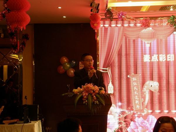 2013年1月29日下午17:30,在歡慶的音樂(lè)聲中,晚會(huì)拉開(kāi)了帷幕。麥坤劉總、華泰沈總、麥點(diǎn)王董分別對(duì)各個(gè)公司的2012年工作進(jìn)行了盤(pán)點(diǎn),總結(jié)了一年來(lái)公司的發(fā)展,肯定了公司全體成員的辛勤勞動(dòng)并表示感謝,同時(shí)鼓勵(lì)全體成員在新的一年里再接再厲,爭(zhēng)取獲得更大更輝煌的成就!