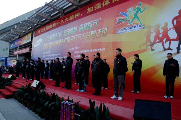 1月1日早上7:30,“三星電子杯”2013年蘇州市第16屆元旦萬人長跑活動,在蘇州體育中心體育館前的市民廣場舉行,我我司員工自發(fā)組團(tuán)參加了此項(xiàng)活動。今年元旦長跑的主題是“全民健身,你我同行”,來自全市的萬名學(xué)生和市民以長跑的方式,迎接2013年的第一縷陽光。